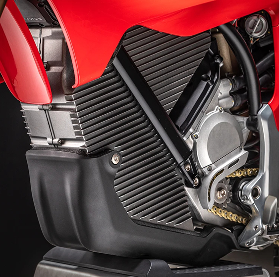 The Varg’s battery system is equally impressive, featuring a 6.5 kWh capacity with a unique “Flying V” design. This patent-pending honeycomb magnesium case connects each battery cell directly to the casing, ensuring exceptional cooling and structural integrity. The battery’s energy density and low resistance provide a range comparable to a full tank of gas on a 450cc motorcycle, capable of completing a full MXGP heat or supporting up to six hours of trail riding.